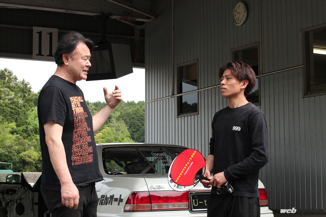 ECUセッティングを含めたクルマの仕上りは順調な様子。それを受けて3本目から、いよいよドリフト走行に入った。後輪に路面を搔きむしらせるパワーは十分。細かいアクセルワークに対してエンジンが鋭く即応しているのも、コースサイドから見ていて分かるほどだ。第一戦での不調を跳ね返すように安定して周回を重ね、テストは無事に終了した。