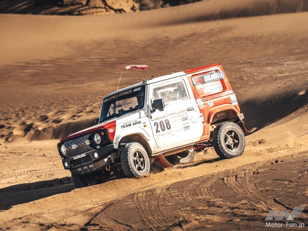また菅原選手の「どうしても“軽”でアフリカを走りたい」というこだわりから選ばれたスズキのJB64ジムニーも、660cc という小排気量のエンジンながら、タイヤの空気圧を0.3まで落として砂丘を登るなど、日本が誇る“軽自動車”の素晴らしさを十分に世界にアピールすることになった。