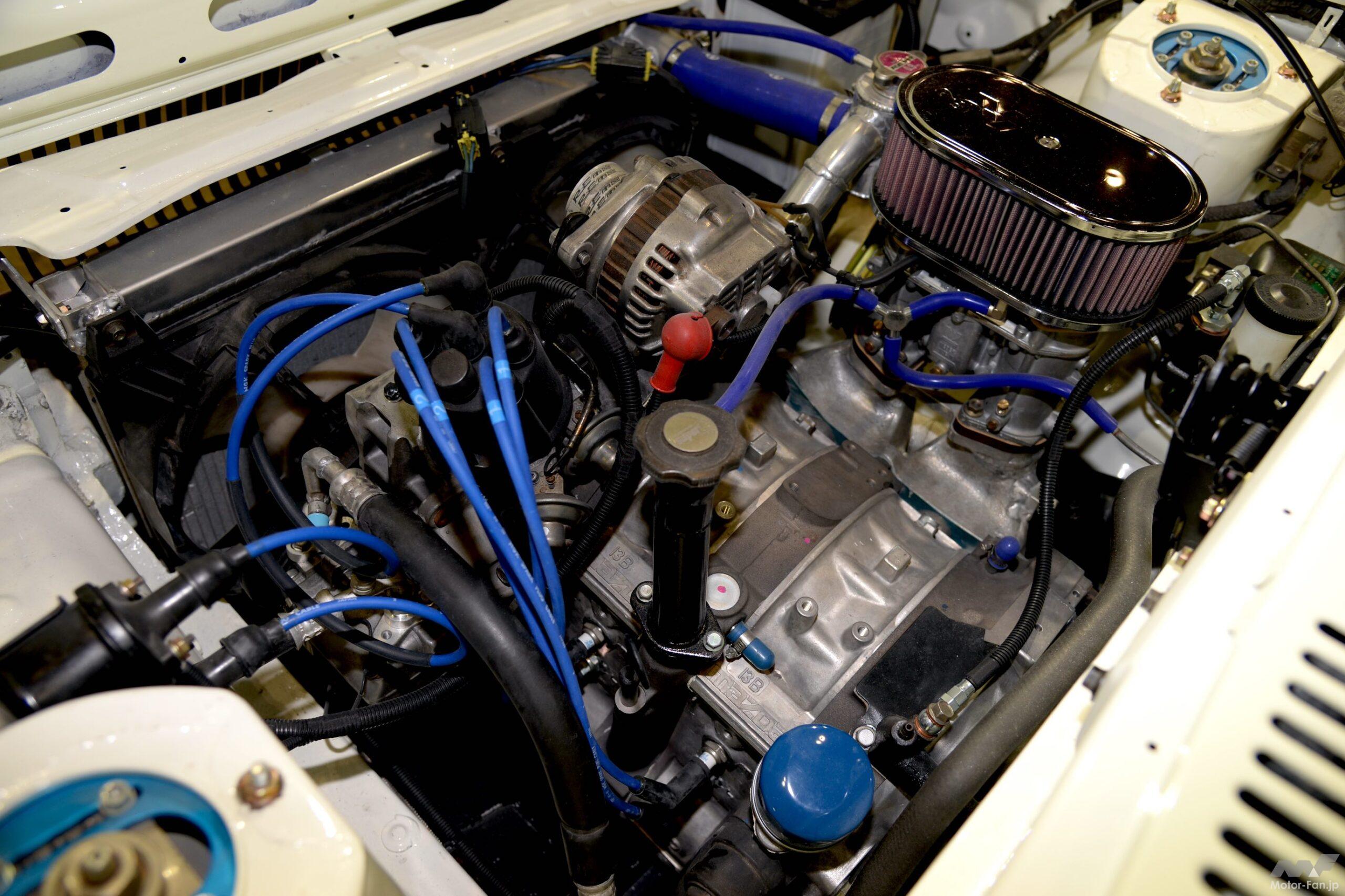 これらチューニングにより13Bは210psものハイパワー仕様となっている。当然足回りの強化も必須で、フロントにはSA22CサバンナRX-7用のサスペンションをベースにスペシャルセッティングが施された。駆動輪となるリヤはリーフリジッドによる固定軸のため、強化リーフとダンパーに変更するくらいしかできないが、前後ともに16インチのエンケイホイールは7Jを選択。195/45R16タイヤとなることで、走りも楽しめるようにされている。