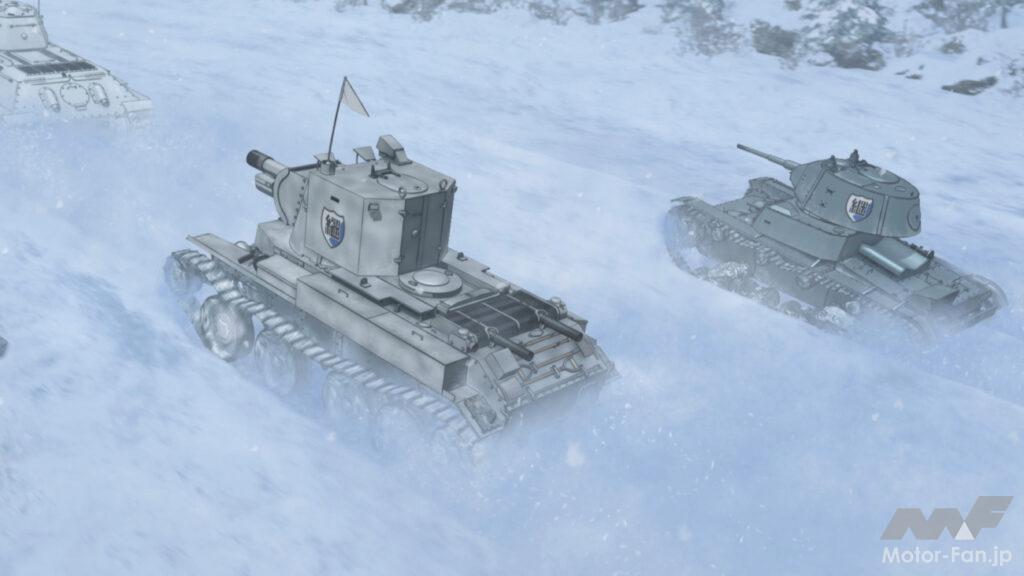 継続高校の戦力は前述のBT-42のほか、同じくクリスティー式サスペンションを採用し、第二次世界大戦時の最優秀戦車との呼び声も高いT-34、軽戦車のT-26、さらには同校の切り札的存在であるⅢ突撃砲G型という強力な布陣だ。両校の戦いの結末はぜひ劇場に足を運んで見届けてほしい。