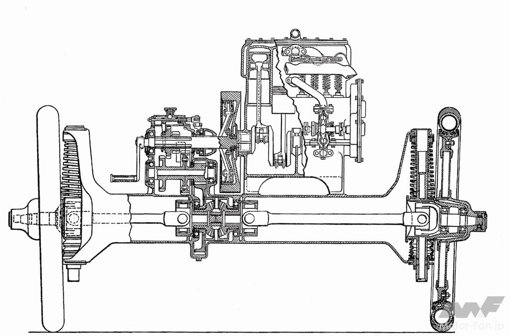 もちろん、この設計ではコーナリング時に左右輪の回転差を吸収できないため、コーナーを曲がる際には内輪側のクラッチを切るという、今日の目で見ると些か乱暴な設計ではあった。
