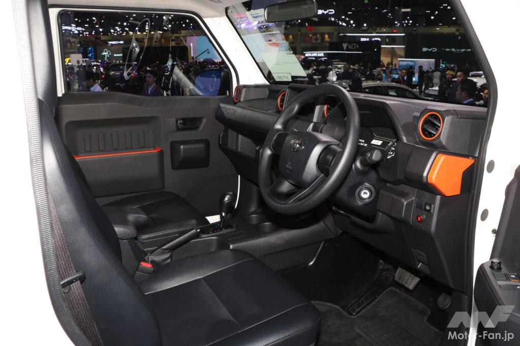そのエクステリアは、ちょっとクラシックテイストで、ランクル70を彷彿させるもの。その武骨さが、なかなかカッコイイ。現行ハイラックスとは似ていないが、これはデザイン性とコストダウンを両立させる秘策ではないだろうか。クロカンのようなギア感を演出することで、無塗装のグリルやバンパーを活かしているのだ。なかなか上手いデザインだと思う。