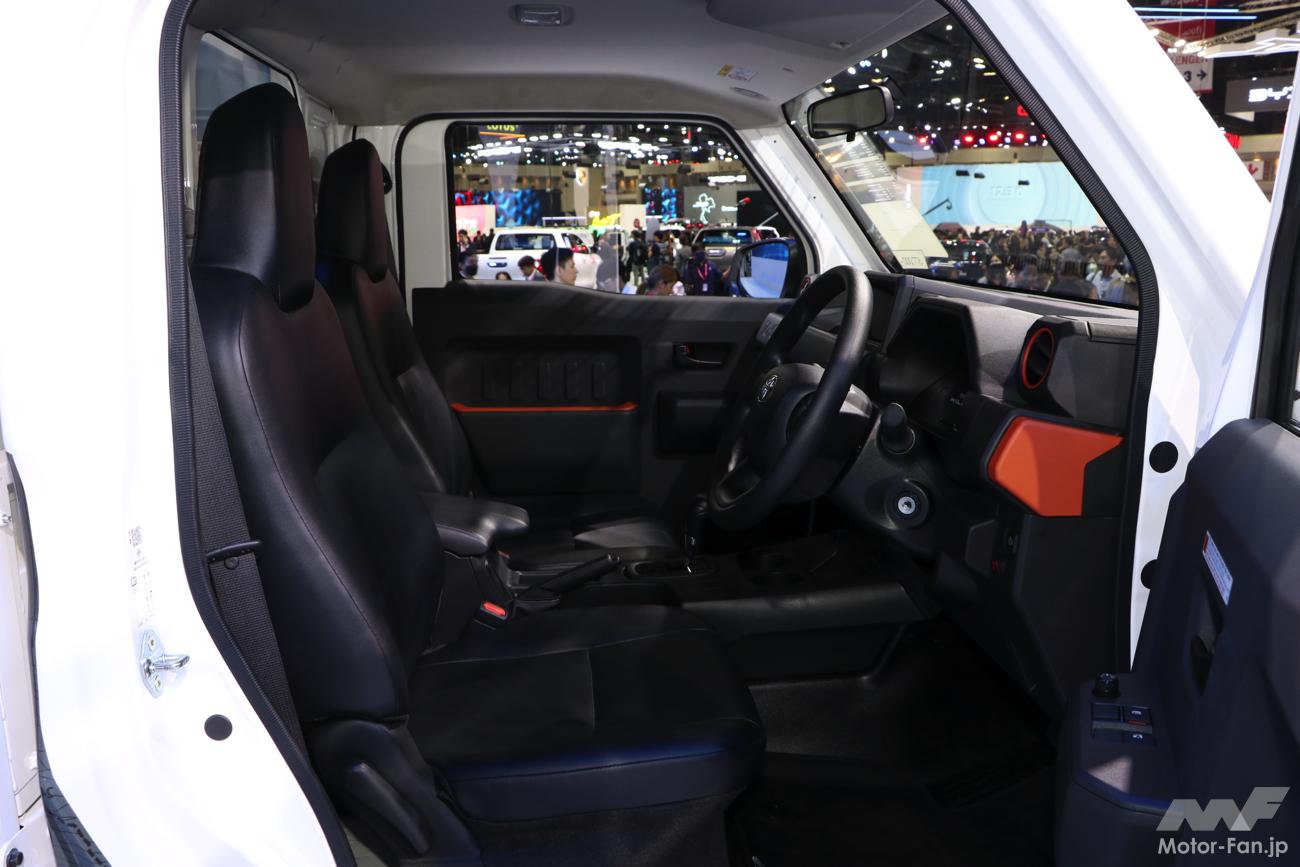 まず基本構成を見ていくと、ボディタイプは、全部で5種類。その中で、ホイールベースはショートとロングを使い分けている。もっとも廉価な仕様だと、架装を前提に荷台すら備えていない。キャビンは、シングルの2名乗車仕様のみとなるが、MT仕様だと座面の広いワイドタイプの助手席仕様になる。