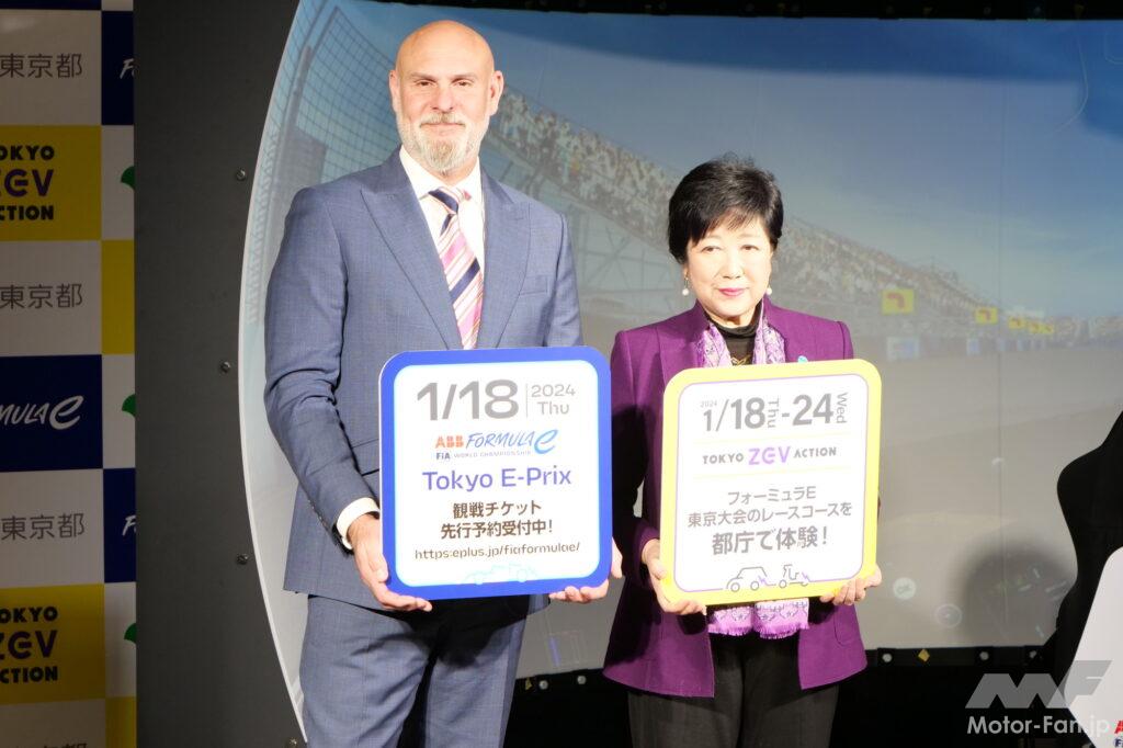 それに先駆けて1月18日、「TOKYO ZEV ACTION×フォーミュラE 東京大会PRイベント オープニングセレモニー」が東京都庁で実施された。このイベントには小池百合子東京都知事のほか、フォーミュラEオペレーションズのCEOを務めるジェフ・ドッズ氏が出席。日本初の四輪による公道レースをアピールした。