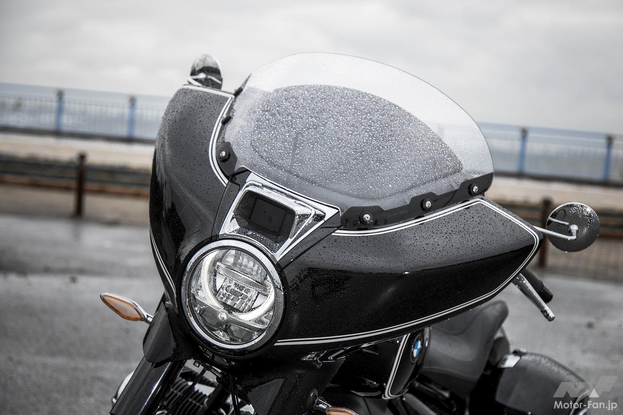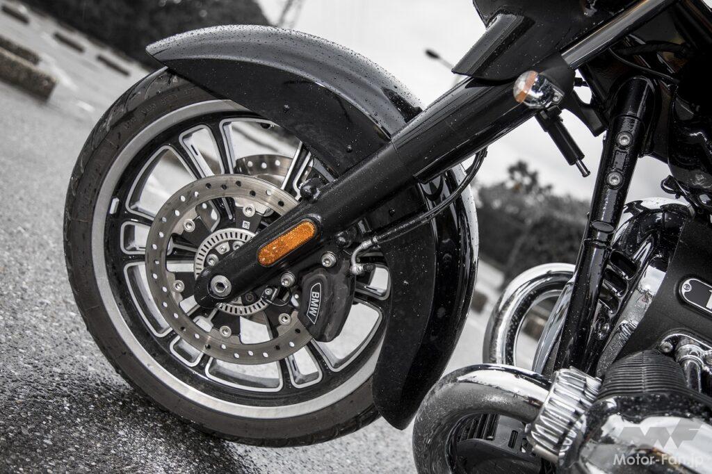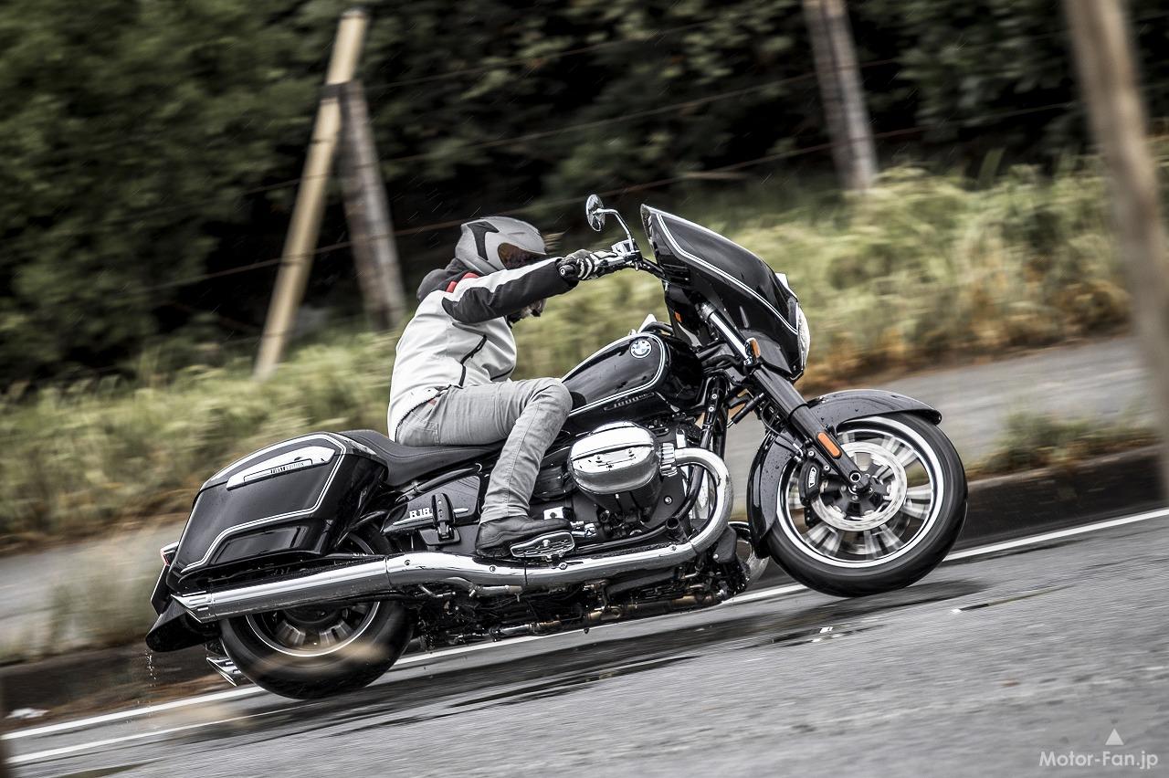 ハンドリングもアップデートされた。今回、BおよびTCはステアリングをあえて逆オフセット形状とし、フォーク角に対してキャスター角を立ち上げたスランテッドタイプとするなどの工夫により、R18よりも軽快で曲がりやすい特性に仕立ててある。ホイールベースが36mm短くなったことも奏功していると思うが、縦置きクランクの利点を生かして倒し込みも軽やか。バンク角も深く、試乗時のウェット路面では車体のどこも擦ることはなかった。そして低速でも扱いやすい。交差点を曲がるような場合でもクルーザーにありがちなガクッとハンドルが切れ込むようなクセもなく、Uターンでも図太いトルクとフラットツインならではの低重心によって抜群の安定感だった。車重とサイズへの慣れは必要だが、とても素直なハンドリングが印象的だった。