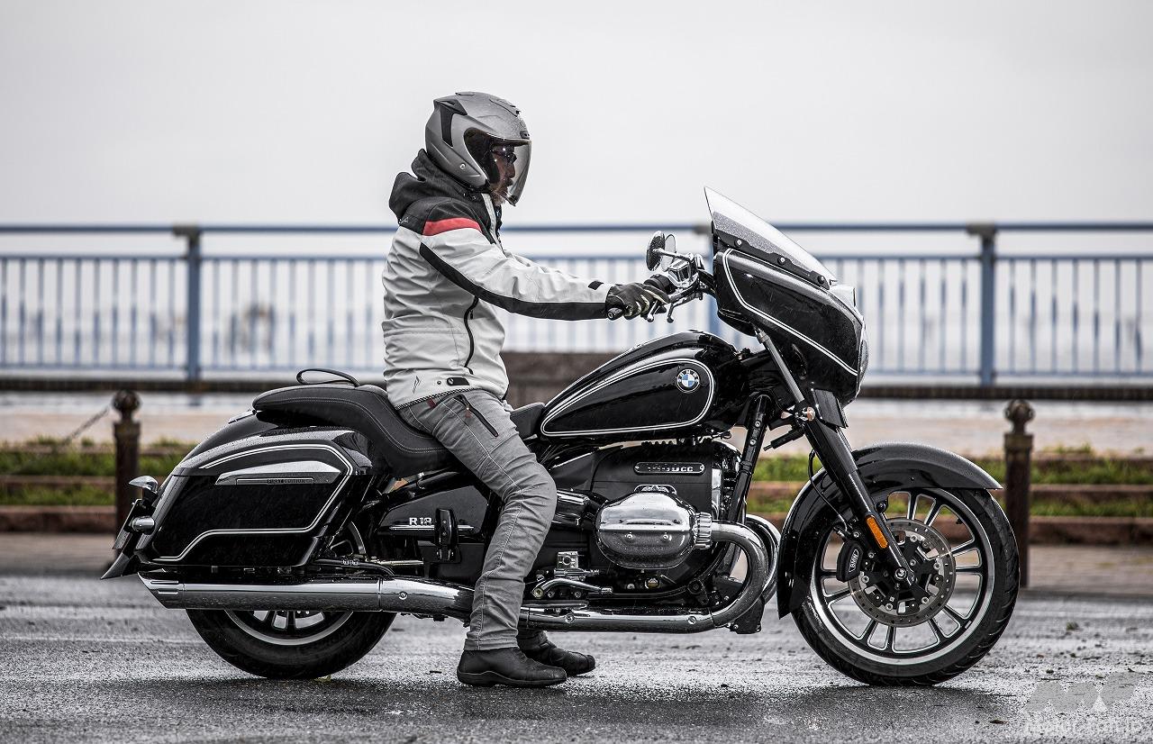 車体後方にゆったりと腰掛けるクルーザースタイルのライポジ。R18に比べるとハンドル位置が近く自然に腕を伸ばせる。シート高は720mmとR18に比べると30mm高いものの、写真のとおり足着きの良さは抜群。ステップもミッドコントロールのため真下に足を着きやすい。BとTCではライポジは変わらない。