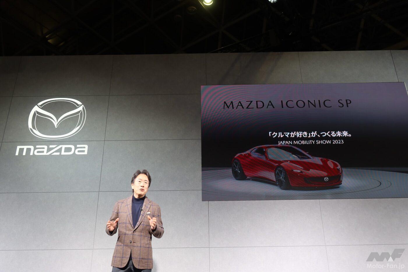 「アイコニックSPには極めて大きな反響をいただきました。熱烈な声をいただいて、我々も本当に感激し、なんとか、実現できるようにスタートを切ろうということです。まだまだ解決しなければいけない技術課題はあり、ものすごくハードルは高い。ですが、マツダ得意の『飽くなき挑戦』のスピリットで立ち向かってみようと。社内にも奮起していただきたいと思っていますので、今日こういう発表につなげました」
