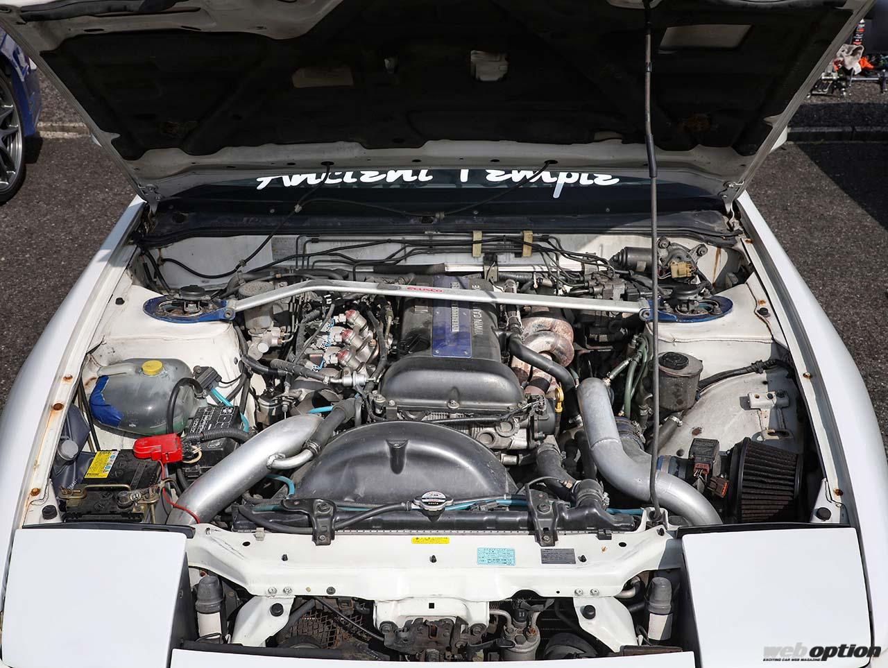 ドラッグチューナーとして名高い“クルウチ”代表の息子さんが乗る180SXは、街乗りを前提としたストリート仕様のシャコタンマシン。派手なチューニングは施されていないものの、燃料系の強化とHKS・GT2835タービンにより340psを発生させている。
