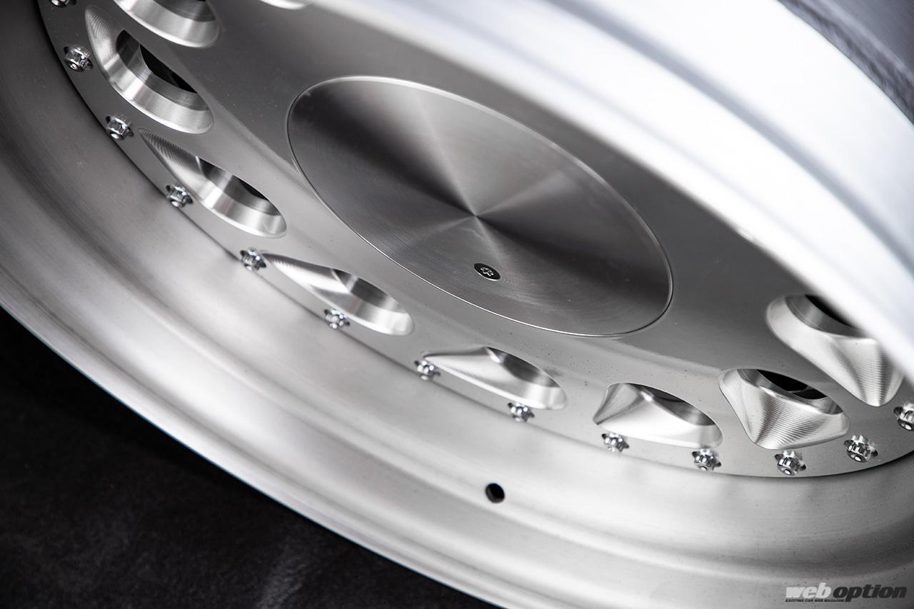 製作を依頼したのはfrontlineやMOZZERなどのオリジナルブランドで知られる、国産鍛造ホイールメーカーのローダーエンタープライズ(旧EMC)。同社が製造するホイールは強度と耐腐食性に優れたA6061-T6という鍛造アルミ合金を素材とし、自社工場のマシニングセンタで削り出される一級品。もちろん、JWLの基準を満たす安全性を証明しており、安心して使用することができる。