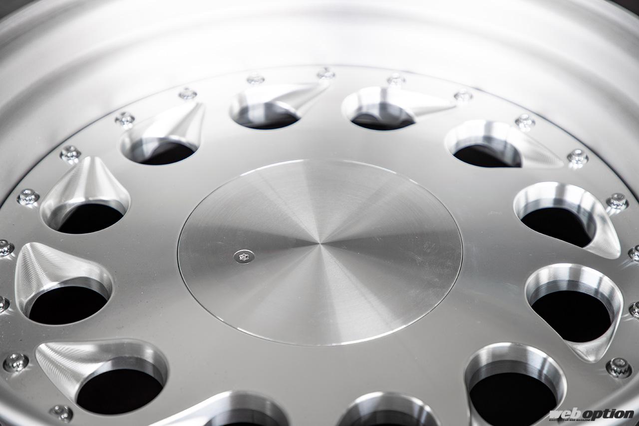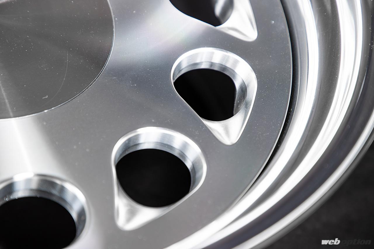 製作を依頼したのはfrontlineやMOZZERなどのオリジナルブランドで知られる、国産鍛造ホイールメーカーのローダーエンタープライズ(旧EMC)。同社が製造するホイールは強度と耐腐食性に優れたA6061-T6という鍛造アルミ合金を素材とし、自社工場のマシニングセンタで削り出される一級品。もちろん、JWLの基準を満たす安全性を証明しており、安心して使用することができる。