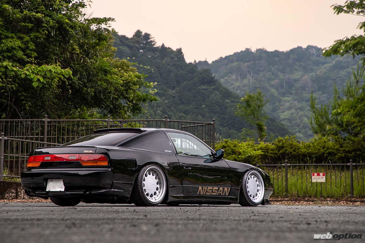 「格好良い社外のホイールもたくさん使ってきましたけど、結局のところ一番飽きが来ないデザインって純正なんですよね(笑)。この火の玉のデザインが格好良いのかって言うと、そうじゃないって意見もあるとは思うんですけど、ちょっとダサいところも良いと言うか。180SXも今回敢えて後期型をベースに前期型バンパーに変えたんですけど、前期型って自動車メーカーの開発者やデザイナーが一番良いものを追求した結果だと思うので、僕は前期型が好きなんです。180SXの前期バンパーはブタ鼻と言われたりして不人気ですけど、本当はデザイナーもこうしたらもっと格好良くなるっていうのを分かっていて、それができなかったんじゃないか…みたいなことを妄想しながら、自分で造形していくのも好きで、この鍛造ホイールはその延長線上にあった究極形みたいなイメージです」とは石川さん。