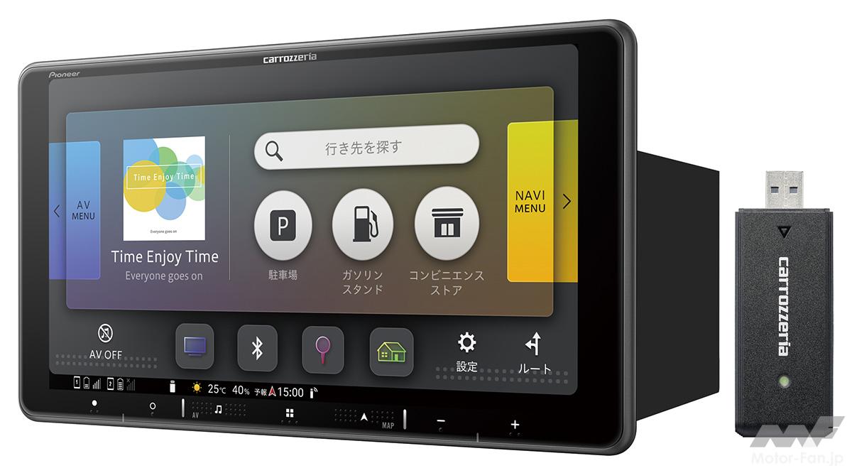 登場から25周年を迎える人気カーナビがついにオンライン対応に。ネットワークスティックの同梱や、モニターサイズの大小まで含め、15のモデルからなる豊富なラインアップを確立。選出モデルはフローティング構造の採用にも踏み切っている。