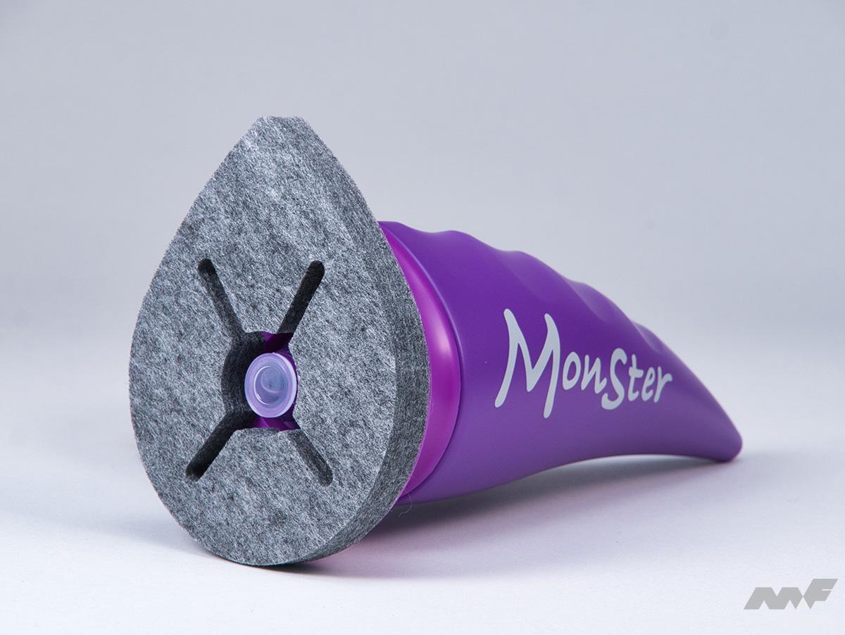 ティアドロップ型のボトル造形と広範なフェルト形状は、力も掛けやすく作業のしやすさをアシスト。「スプラッシュ」は雨滴が吹き飛ぶ強力な超撥水効果を約4ヵ月間キープし、「ストロング」は撥水効果を12ヵ月持続させるなど、耐久能力に秀でる。