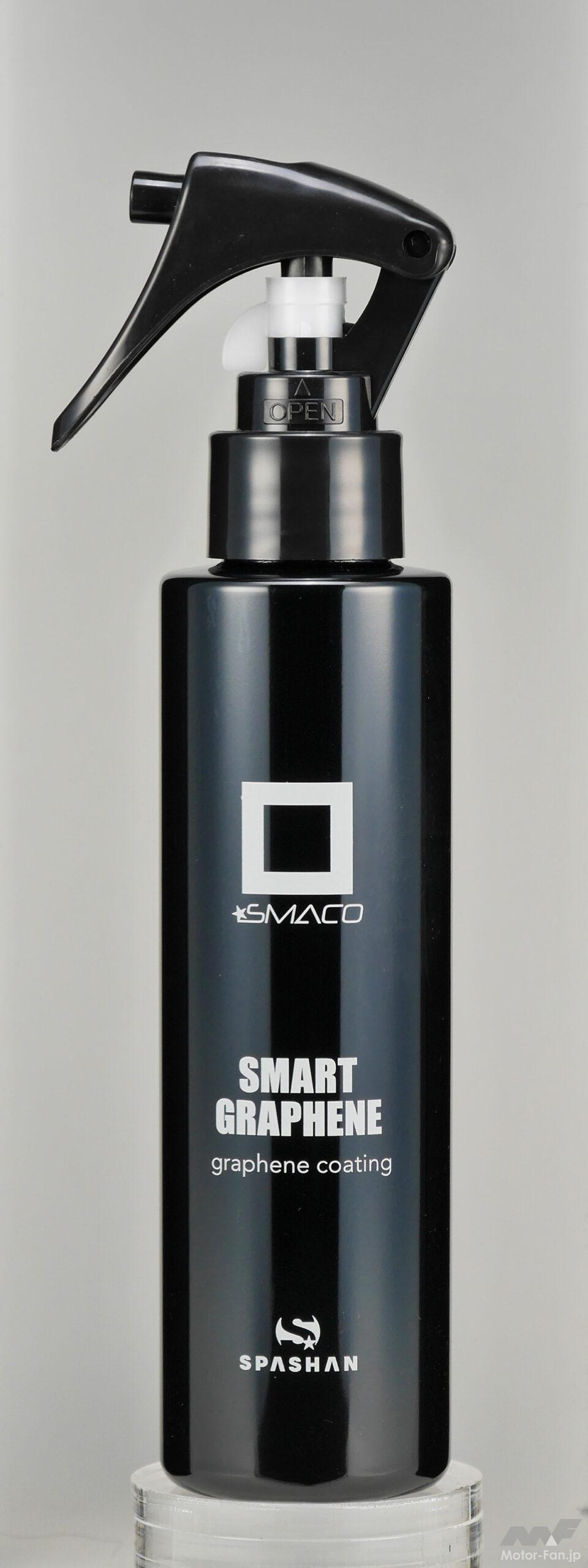 高級イメージが先行するSPASHANながら、簡単施工のスタンダードシリーズとして確立。耐久重視のスマートグラフェンのほか、ツヤと光沢重視のキャンディコートと爆裂撥水のシューティングジャクソンがあり、3モデルを併用するレイヤーコートの楽しみもある。