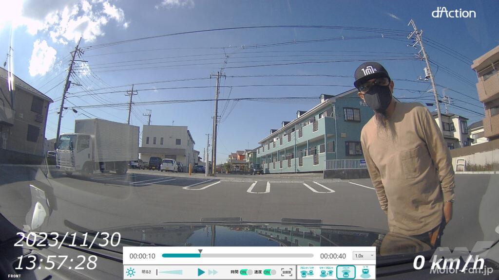 また、搭載するイメージセンサーは460万画素の高画質モデル。そのため、ドラレコ協議会が推奨する「10メートルの距離でナンバープレートの数字が読み取れる」という性能を軽くクリアしているのだ。もちろんこの大きな記録データを素早く処理するシステムも自社開発しているため、記録エラーなどの心配もナシ。