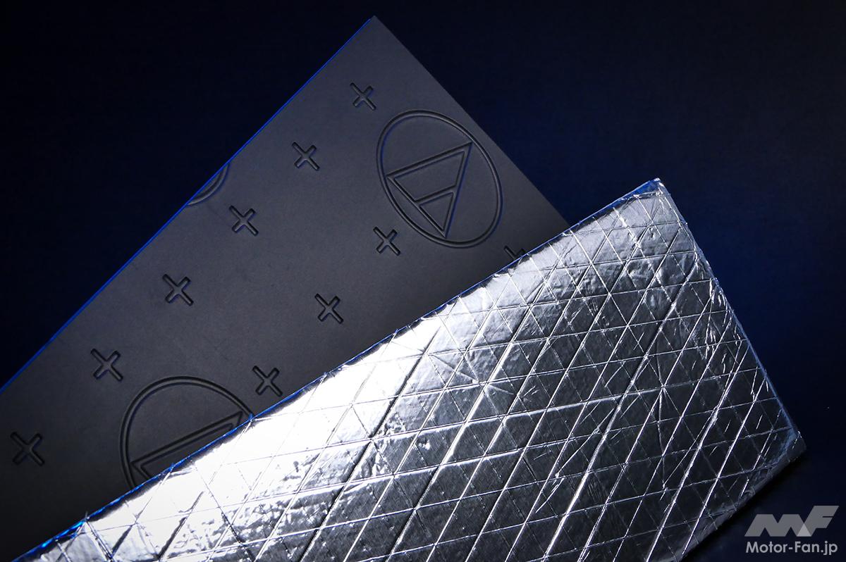 一方『ノイズレスラグ』はフロアへの施工を想定して開発されていて、ソフトゴムマット層により外来ノイズをブロックでき、さらにはスポンジ層により吸音・断熱効果も上げられる。そしてフロアに対しても『アクワイエ』シリーズの制振材を貼った上にこれを施行すれば、車内静音効果が一層アップする。