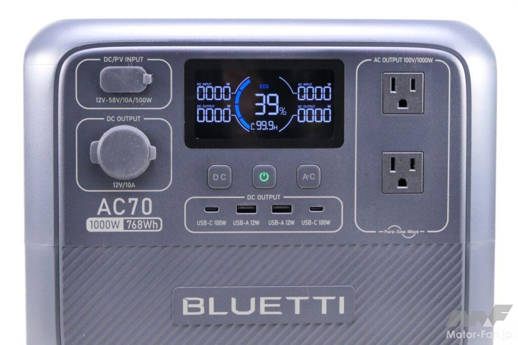 ポータブル電源やソーラーパネルの販売を手掛けるブルーティの小型ポータブル電源ステーション『AC70』は、奥行き約32cm×幅約21cm×高さ約26cm、重量約10kgとコンパクトサイズながら、バッテリー容量は768Whと大容量。40Wの冷蔵庫なら約11時間稼働可能。AC出力は1000W(AC100V10A)と頼もしい。リン酸鉄リチウム電池を採用し、3000+充放電回数の長寿命と熱安定性を確保している点も魅力だ。