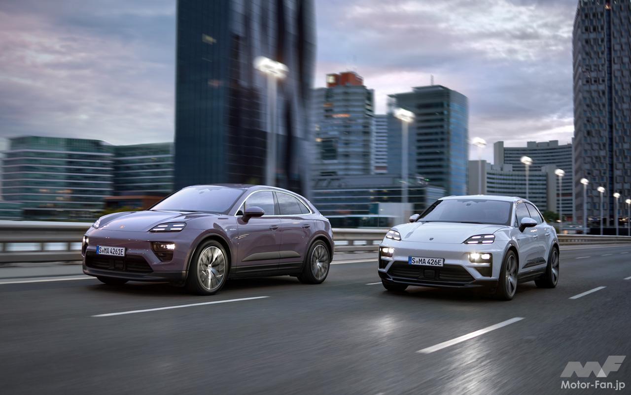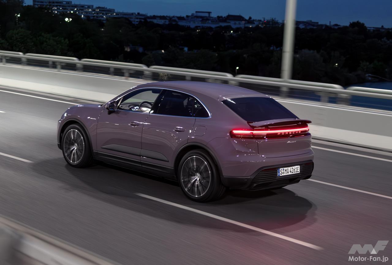前後2モーター合わせて408ps/650Nmを発揮する「マカン4」と、639ps/1130Nmの「マカンターボ」を設定。0-100km/h加速タイムはそれぞれ5.1秒と3.3秒