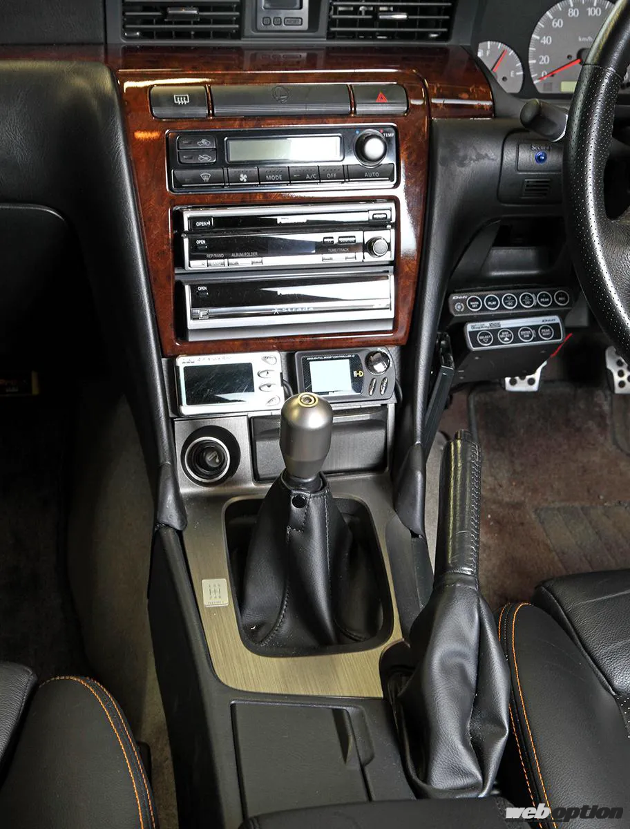 ミッションはECR33用の5速MTを流用。合わせてBNR34用の純正センターコンソールをスマートに流用した。