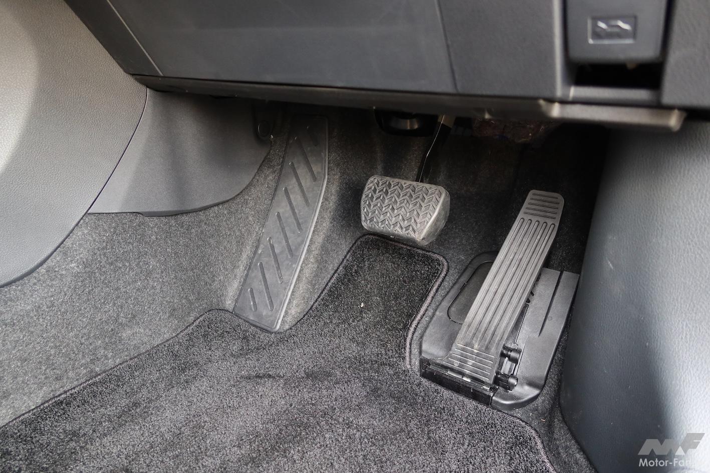 レクサスとしてはスタンダードだが、ヤリスクロス比でいえば、アクセルペダルを吊り下げからオルガンタイプにしたのも変化点。フットレストもこだわりを持って設定しており、ペダル操作に力をいれやすい角度に変更している。