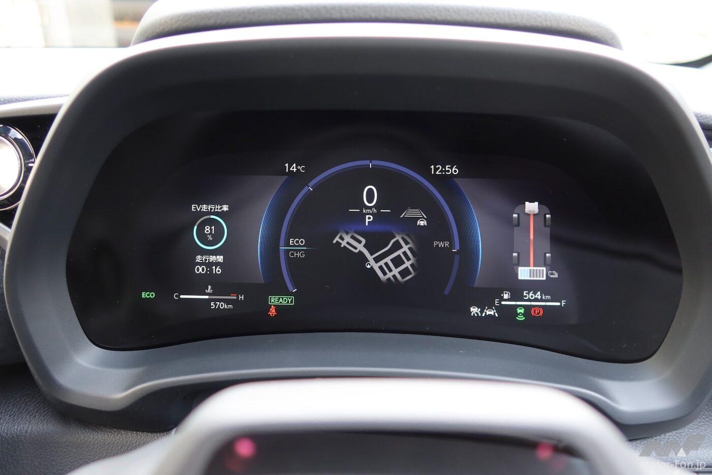 いずれも燃費と相反する制御だが、それよりも走りとNVを優先したということだ。しかし、少しばかり燃費を犠牲にしようと、もともとが極めて効率の高いシステムなので(空力で取り戻してはいる)、周囲を見渡せば、依然として燃費のいいクルマの部類に収まっている。前述したように、2WDのWLTCモード燃費は27.7km/Lだ。LBXは気持ち良く走って燃費がいいクルマと断言していい。