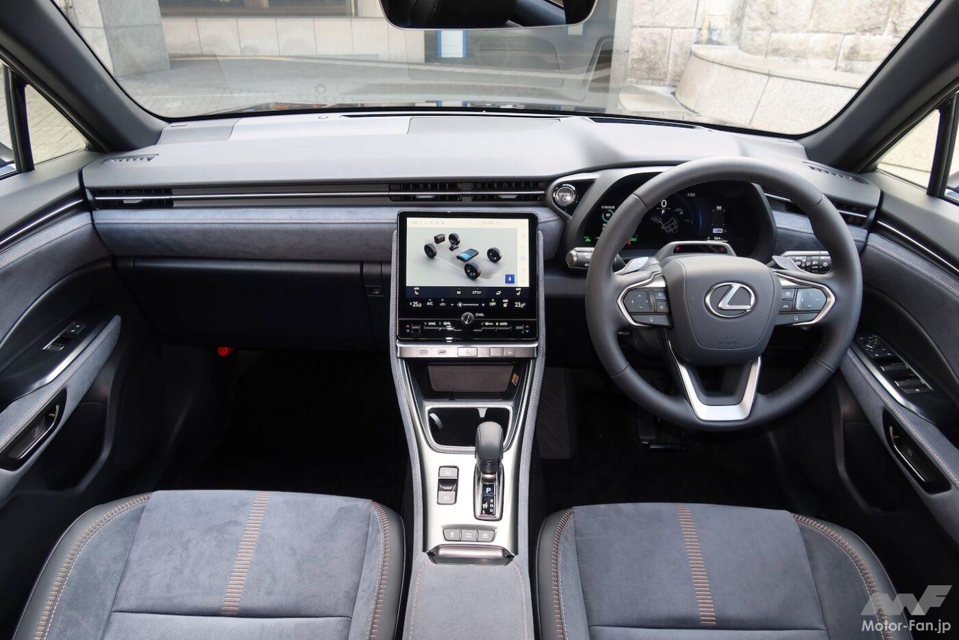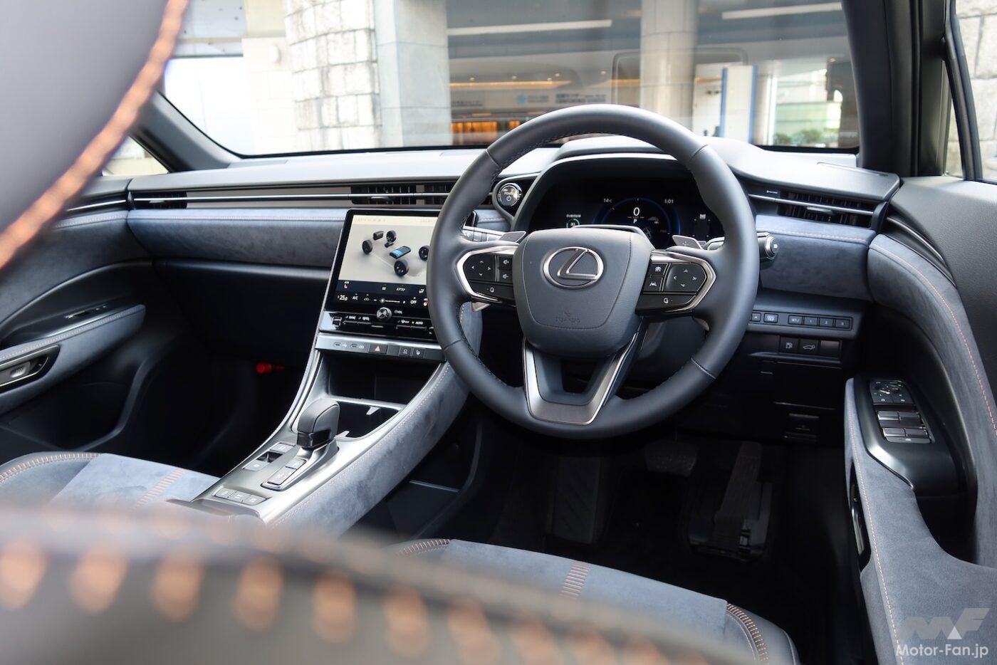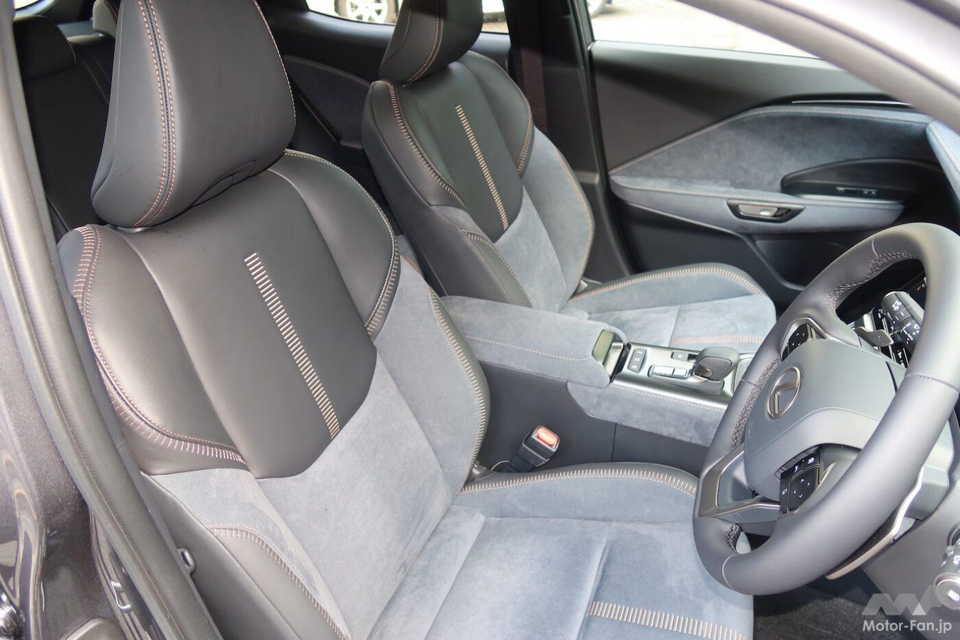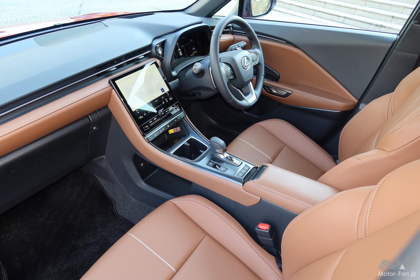 リヤフェンダーの膨らみはクルマをグラマラスに見せているし、筋肉質だ。絶対的なサイズは小さいが、存在感はあり堂々としている。上質なのは見た目だけではなく、ドアを開け閉めする度に感じられる。2021年のNXからレクサスで採用が始まった電動ラッチ(e-ラッチシステム)を採用しており、内も外もハンドルに指を当てて軽く押せば電動でロックが解除される。