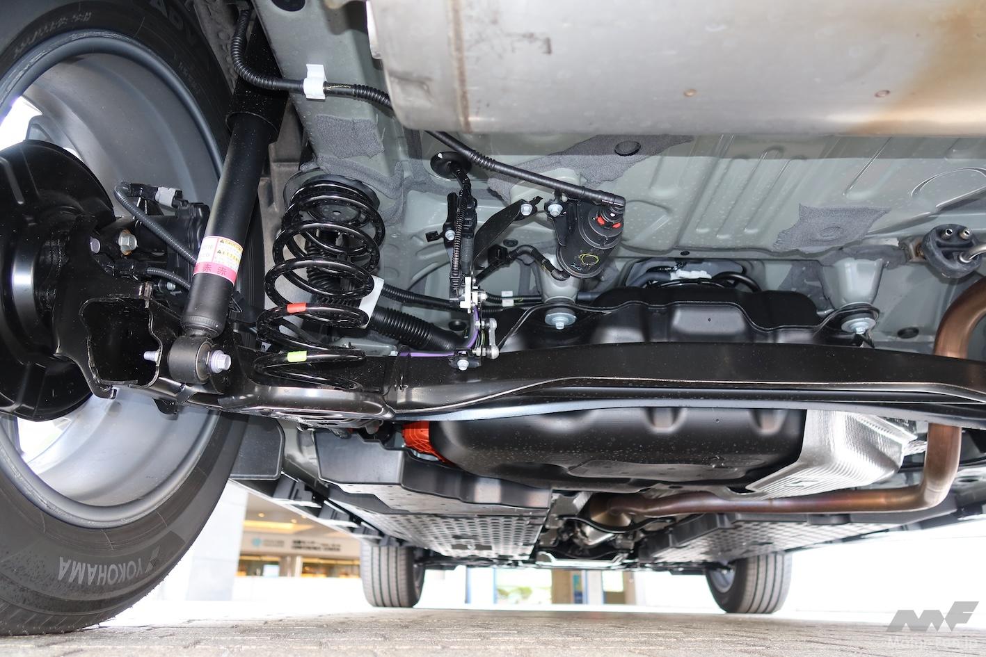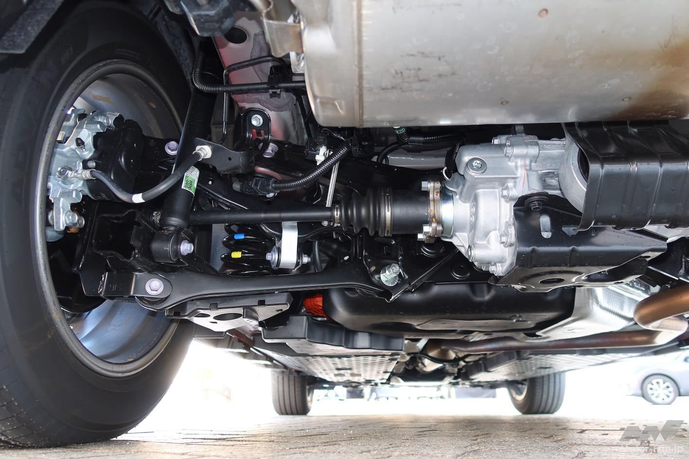 ベースは同じGA-Bプラットフォームのヤリスクロスでスチール鋳造品だったナックルは、軽量化のためアルミ鍛造品に置き換え、タイヤサイズ拡大にともなう重量増を相殺している。