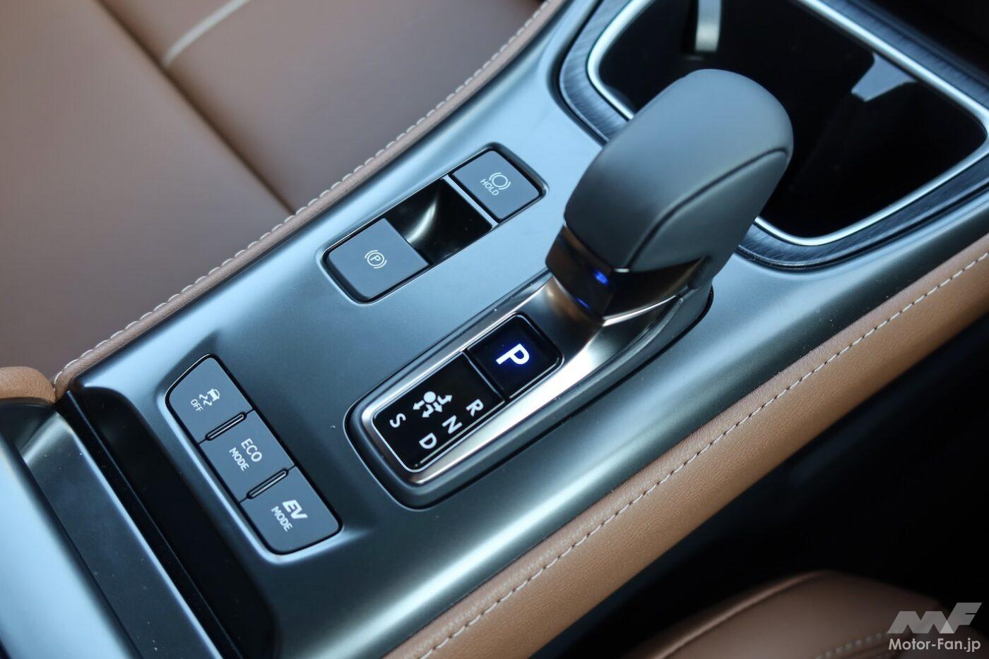バッテリーから持ち出す出力では足りないときはエンジンが始動して出力をアシストするが、エンジンの存在はドライバーに意識させないよう、制御で始動時の回転立ち上がりを滑らかにし、振動を抑えている。また、点火時期を遅角することで、回転0.5次や1.5次のハーフ次数成分を抑え、音の雑味を抑えてもいる。