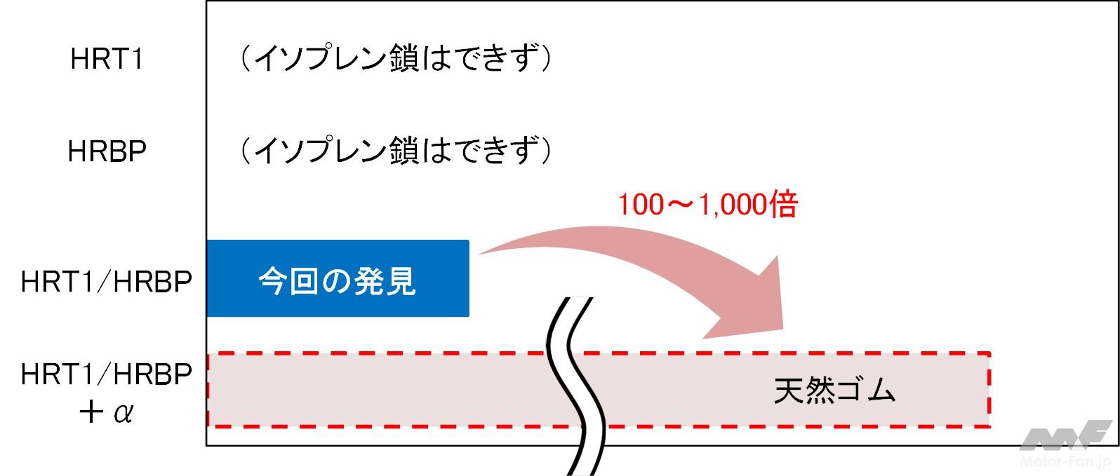 パラゴムノキでの天然ゴム生合成(超高分子量イソプレン鎖の生合成)においては「Hevea rubber transferase 1 (HRT1)」「HRT1-REF bridging protein (HRBP)※1」「Rubber elongation factor (REF)※2」と呼ばれる3つのタンパク質が重要であることがわかっていたが、複数の分子結合を行う酵素と考えられる「HRT1」がどのような条件で機能を発揮するかは解明されていなかった。