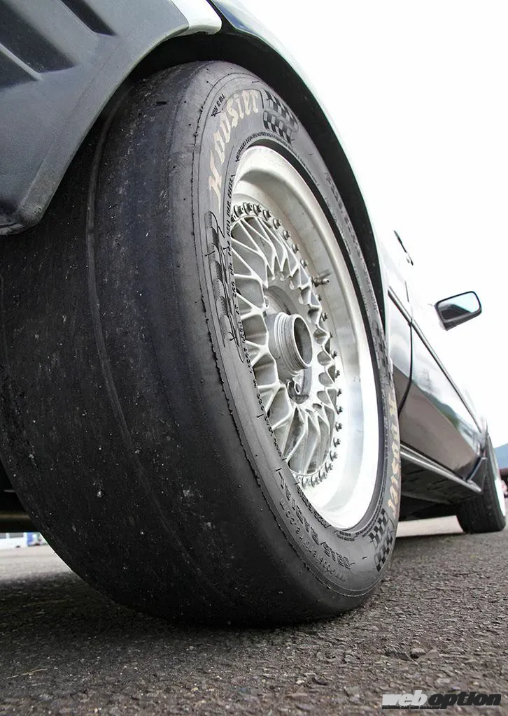 タイヤは、ゼロヨン走行時のみ225/50-16のフージャードラッグラジアルを使用。普段履きはデッドストックのロンシャンXR-4ホイール+ストリートラジアルだ。
