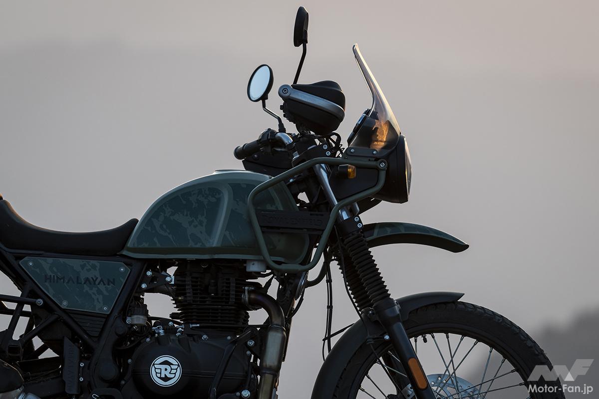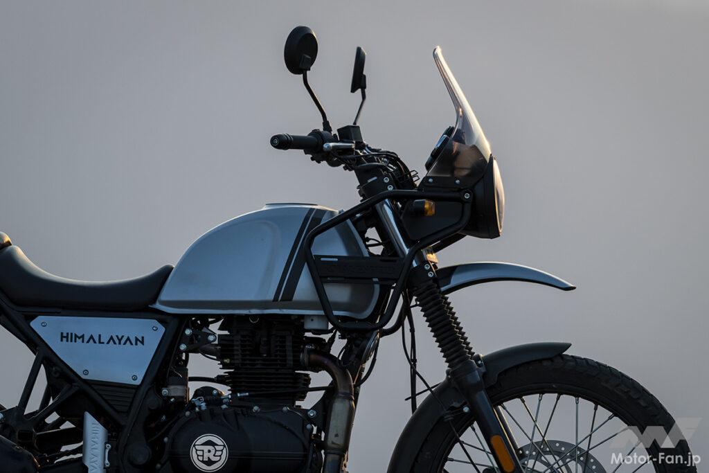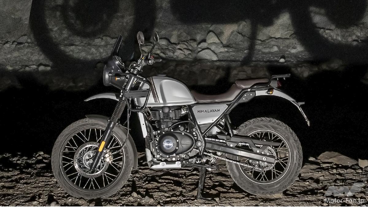 今回新しくなって登場したHimalayan(ヒマラヤ)は、2016年に誕⽣(国内では正規代理店のピーシーアイより、2020年に発売)した、走行シーンを選ばない、オンロード&オフロードの両方に適応するデュアルパーパスモデル。ロイヤルエンフィールドが50年以上に渡ってヒマラヤ⼭脈を⾛破してきた経験からインスピレーションを得た、シンプルで⾼性能な「どこにでも⾏ける」をコンセプトに開発された。
