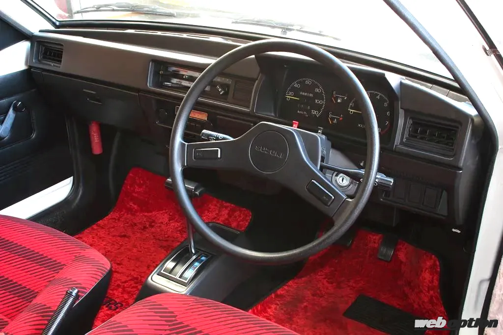 後、1985年2月のマイナーチェンジでヘッドライトが丸型から角型に変更され、フロントグリルもデザインを一新。エンジンスペックは31ps/4.4kgmに向上し、PS-Lはホイール&タイヤのサイズアップ(10→12インチ化)やフロントディスクブレーキ化の他、5速MTが搭載されるなど、結構な手直しが行われた。