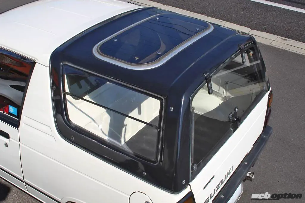 当時の純正オプションカタログによると、FRP製の本体にアクリル製サイドウインドウと脱着式ガラスルーフを備え、9万7000円也。この値段設定、車両価格の5分の1にも相当するわけで、恐らく購入者は非常に少なかったはず。だからこそ、程度極上の状態でこうして残っていることが奇跡としか言いようがないのだ。