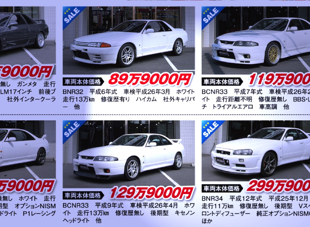 ちなみに現在の大まかな中古車相場は、BNR32で400万円〜1000万円、BCNR33で400万円〜800万円、BNR34で1500万円オーバーといったところだが、ここでBNR32が25年ルールの対象となる直前(2013年)の中古車相場を振り返ってみようと思う。