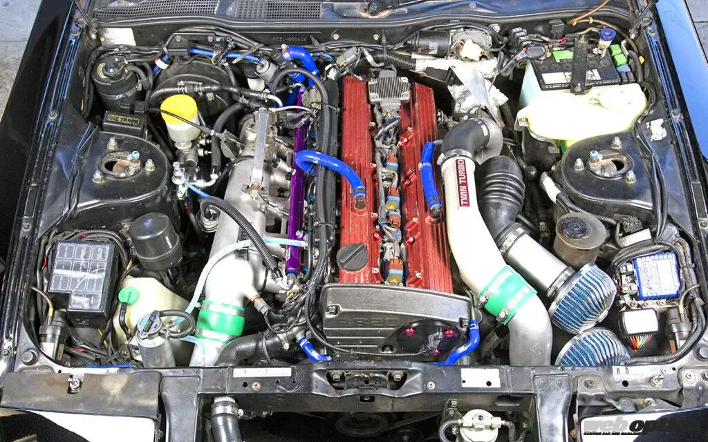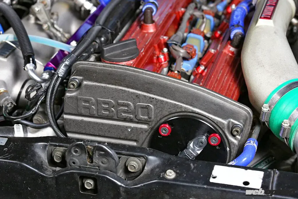 元々はRB20DETのブーストアップ仕様だったが、時間をかけながら徐々にステップアップしていき、現在は2.8Lまで排気量を高めたRB26DETT(BNR32用)に、GTIII-RSタービンをツインで組み合わせる超ハイスペック仕様にまで進化させたのだ。