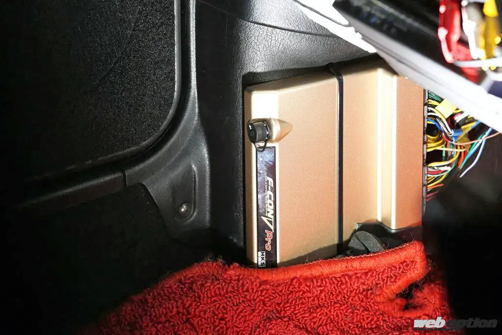エンジン制御にはF-CON Vプロ3.4を採用。HKSクランク角センサーコンバージョンキットとの組み合わせで、高精度のマネージメントを構築している。