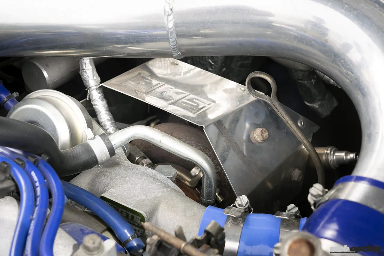 パワーユニットは、アクセルを踏み返した際のパンチ力が欲しいとのリクエストを受けてフェニックスパワーが製作したEJ20改2.2L仕様。ヘッドにはJUNのハイカムを組み、タービンはGTⅢ-RSでブースト圧1.6キロ時に426.5ps&57.9kgmを発揮する。インジェクターはサードの850ccで、パワーFCでマネージメントを行なっている。