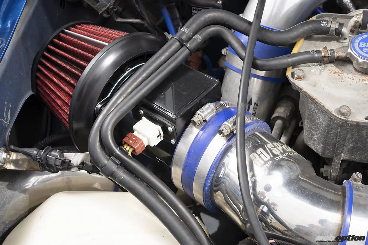 ストリート仕様ということでDジェトロ化は行わず、計測キャパシティに優れるインフィニティQ45の90φエアフロを投入。扱いやすさとポテンシャルを両立するためのセットアップだ。
