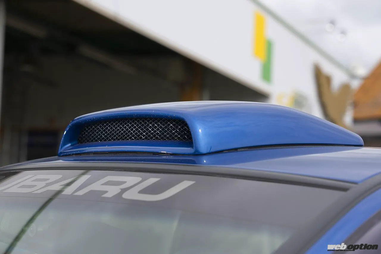 車両購入時から装着されていたラ・アンスポーツのWRルーフスクープ。見た目だけのダミーではなく、ルーフベンチレーターも備えている。