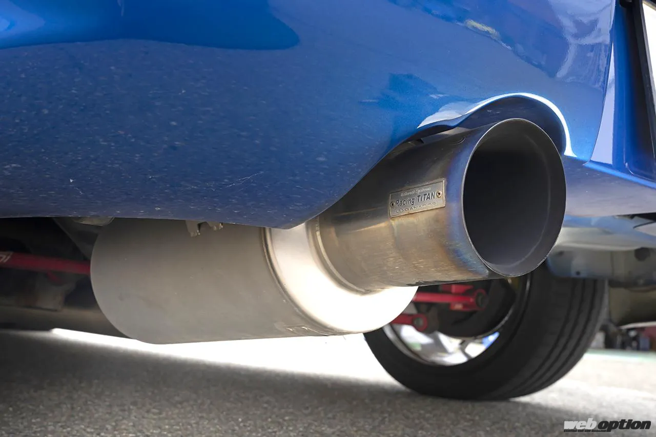 GC8の魅力は軽さにあるとの考えから、エキゾーストマフラーにはガナドール製のチタンモデルをチョイス。優れた排気効率はもちろんのこと、ストリート走行でも心地良いレーシングサウンドが味わえるお気に入りのアイテムだ。