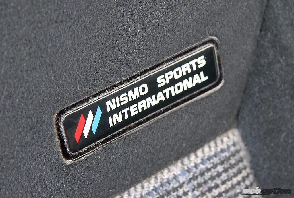背もたれに設けられたニスモのロゴマークが誇らしげ。今では見かけないデザインが逆に新鮮だ。