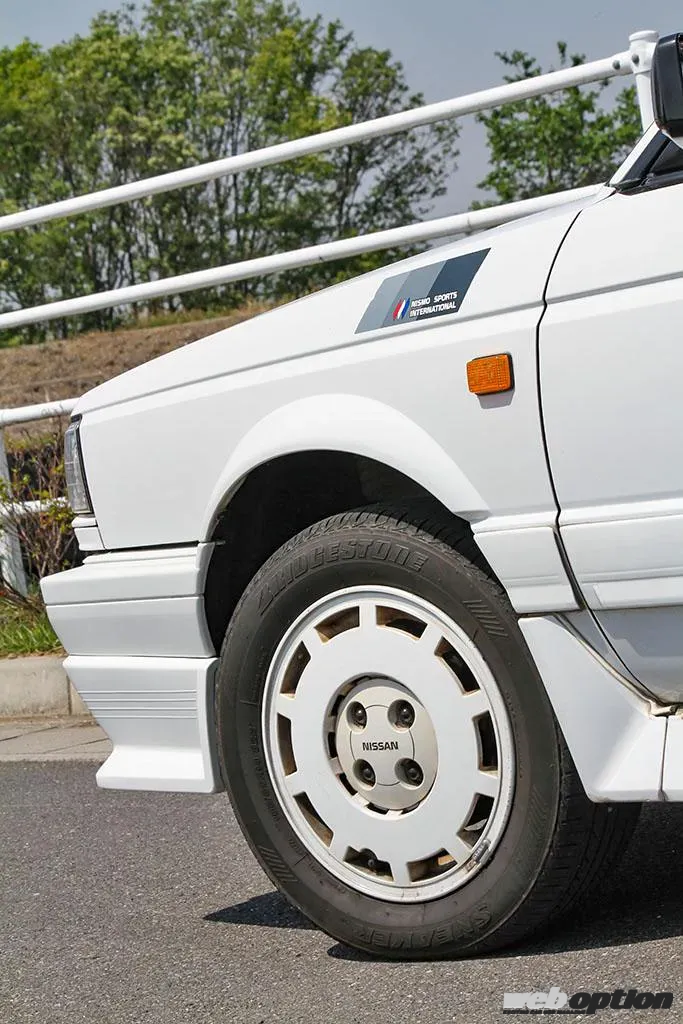 それから、当時流行ったディッシュタイプのアルミホイールもニスモ仕様の専用品。ただし、中期型以降は標準モデルにもオプション装着できるようになったため、ありがたみは半減している。ちなみに、フロントフェンダーに貼られたニスモステッカーは前期型と中後期型でデザインが異なる。