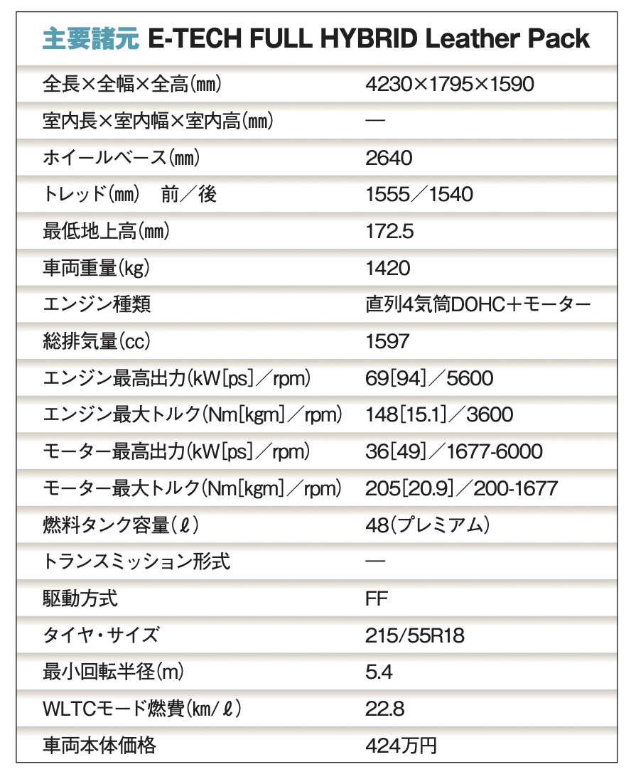 確かに高速域では頼もしさやレスポンスの良さが味わえる。一方、街なかなど低速域でもモーター感の強さと燃費の良さはしっかりともち合わせていてさすがは最新のフルハイブリッドと感心させられる。ルノーの技術力の底力を見せつけているのだ。