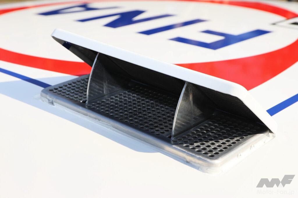 カラーをFINAカラーにレプリカしているだけでなく、ルーフにはベンチレーター、ボンネットには熱抜きのダクトを追加するなど手を加えている。ルーフもボンネットもカットして加工しているが、その仕上がりは実に綺麗だ。