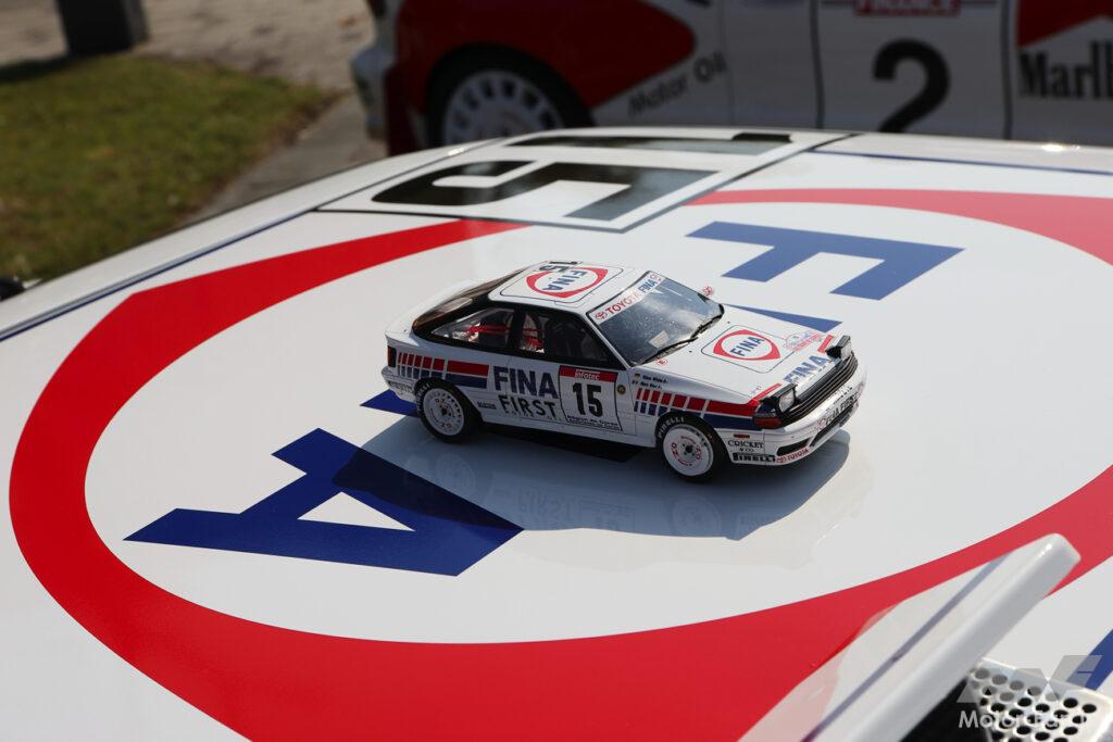 このFINAカラーのセリカGT-FOURのモデルは1991年のWRC第5戦ツール・ド・コルスに参戦したトヨタのサテライトチーム「TOYOTA FINA TEAM」のもの。FINAはベルギーの石油会社でモータースポーツ、特に市販車系のカテゴリーには積極的に露出しており、WRCに加えDTMやスーパーツーリング、ルマン24時間でチームやドライバーをサポートしていた。現在はTOTAL(トタル)傘下になっている。