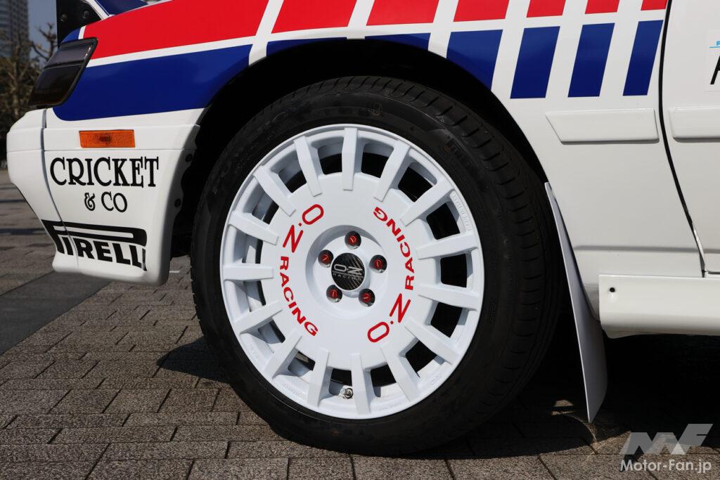 そしてやはりST165型セリカGT-FOURのラリーレプリカに欠かせないのがOZレーシングのホイール。復刻したRally Racingの17インチはもちろんホワイトに赤文字。ターマック仕様らしく17インチに215/451R17サイズのピレリPOWERGYを装着する。