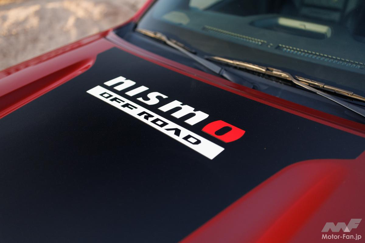 さらに、NISMOオフロードのリフトアップキットをはじめ、鍛造アッパーコントロールアームや高性能ショック、ヨコハマジオランダーX-ATタイヤ(サイズ265/70/R17)、NISMOキャットバックエキゾーストなど、NISMOオフロードのサスペンションパーツを装着することで、トラックの外観と走行性能を向上させている。