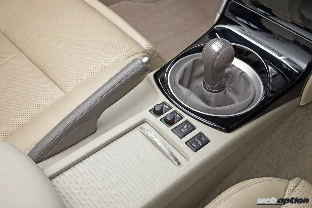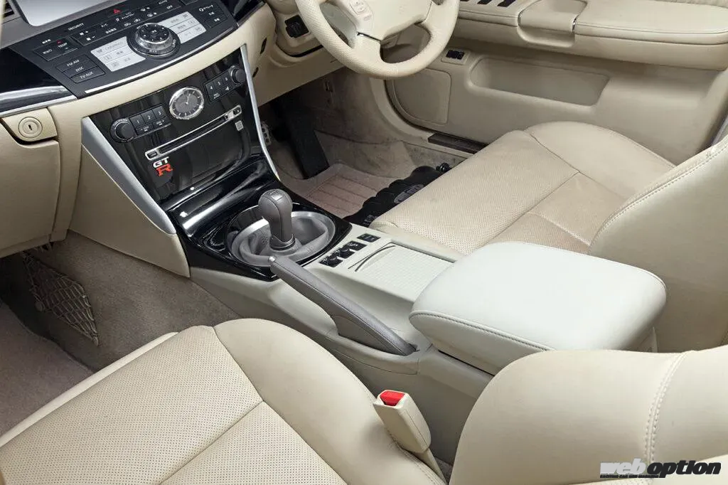 車内側では、当然シフト周りのパネルなどが合わなくなるが、これはCPV35のMT用パーツを組み合わせて対応した。さらに、クラッチをはじめとするペダル関係もCPV35用を流用。本来はペダル式のパーキングブレーキも、違和感なくサイド式へと変更されている。