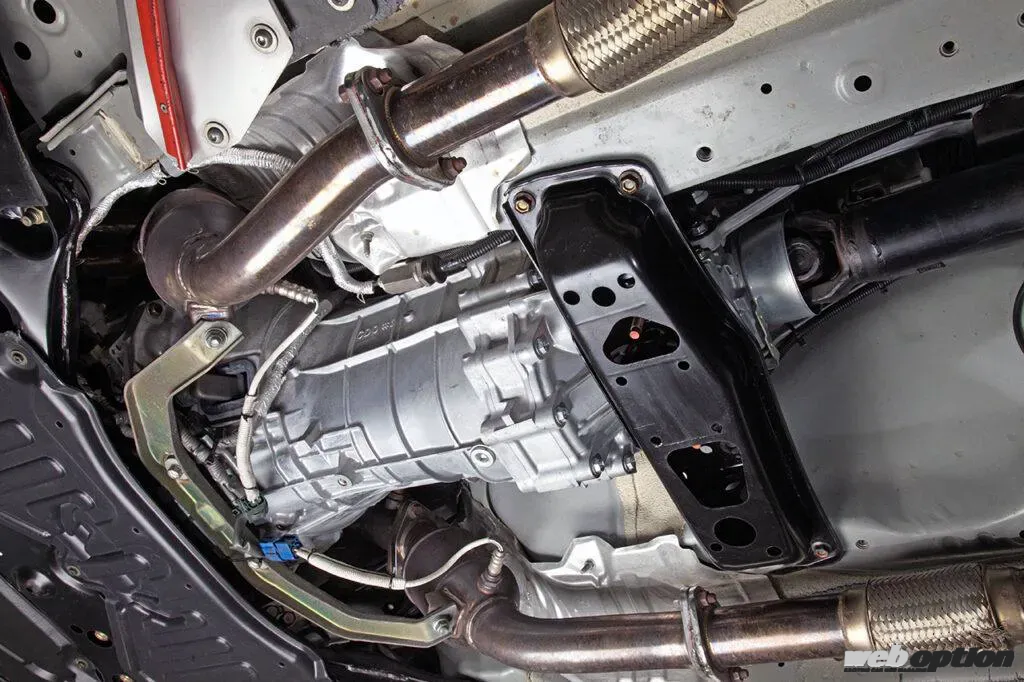 そしてミッション。過給機パワーをもっと引き出したいというオーナーの要求に対し、レヴュー前塚代表はZ33用の6速MT化を提案。というのも、Z33のミッションならケース加工無しで搭載できるため、コストを抑えられるからだ。
