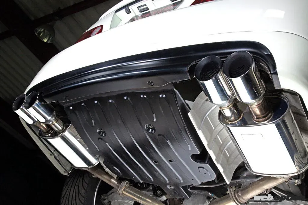 エキゾースト環境もキッチリと手が入り、東名パワードのEXマニからスポーツ触媒を経てタナベのスーパーメダリオンマフラーに繋がるレイアウトを構築。ちなみに、テールエンドは4本出しに加工していたりする。こういったワンオフ製作はレヴューの得意分野だ。